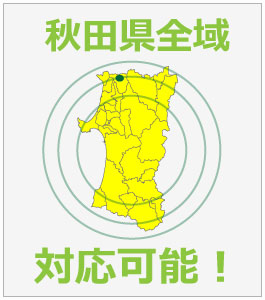 秋田市/能代市/横手市/大館市/男鹿市/湯沢市/鹿角市/由利本荘市/潟上市/大仙市/北秋田市/にかほ市/仙北市/小坂町/三種町/八峰町/藤里町/五城目町/八郎潟町/井川町/大潟村/美郷町/羽後町/東成瀬村/仙北市角館町/大仙市大曲